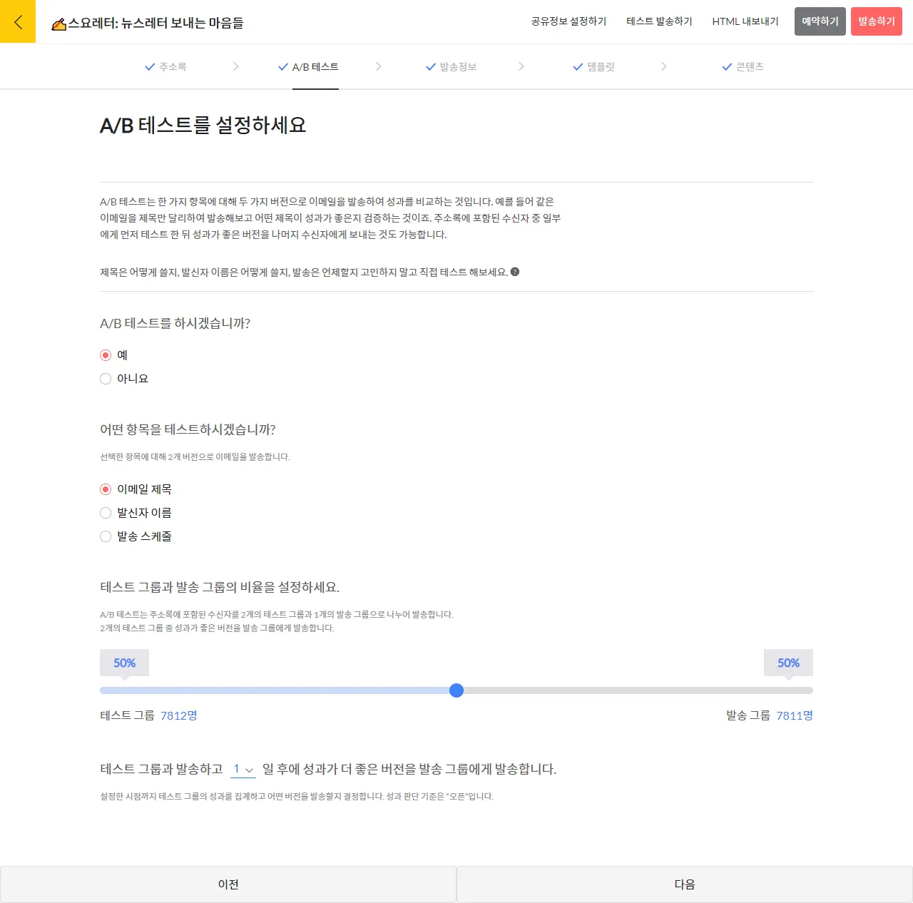 이 외에도 A/B 테스트, 이메일 SNS 공유 등 성과를 개선할 수 있는 기능을 제공합니다.