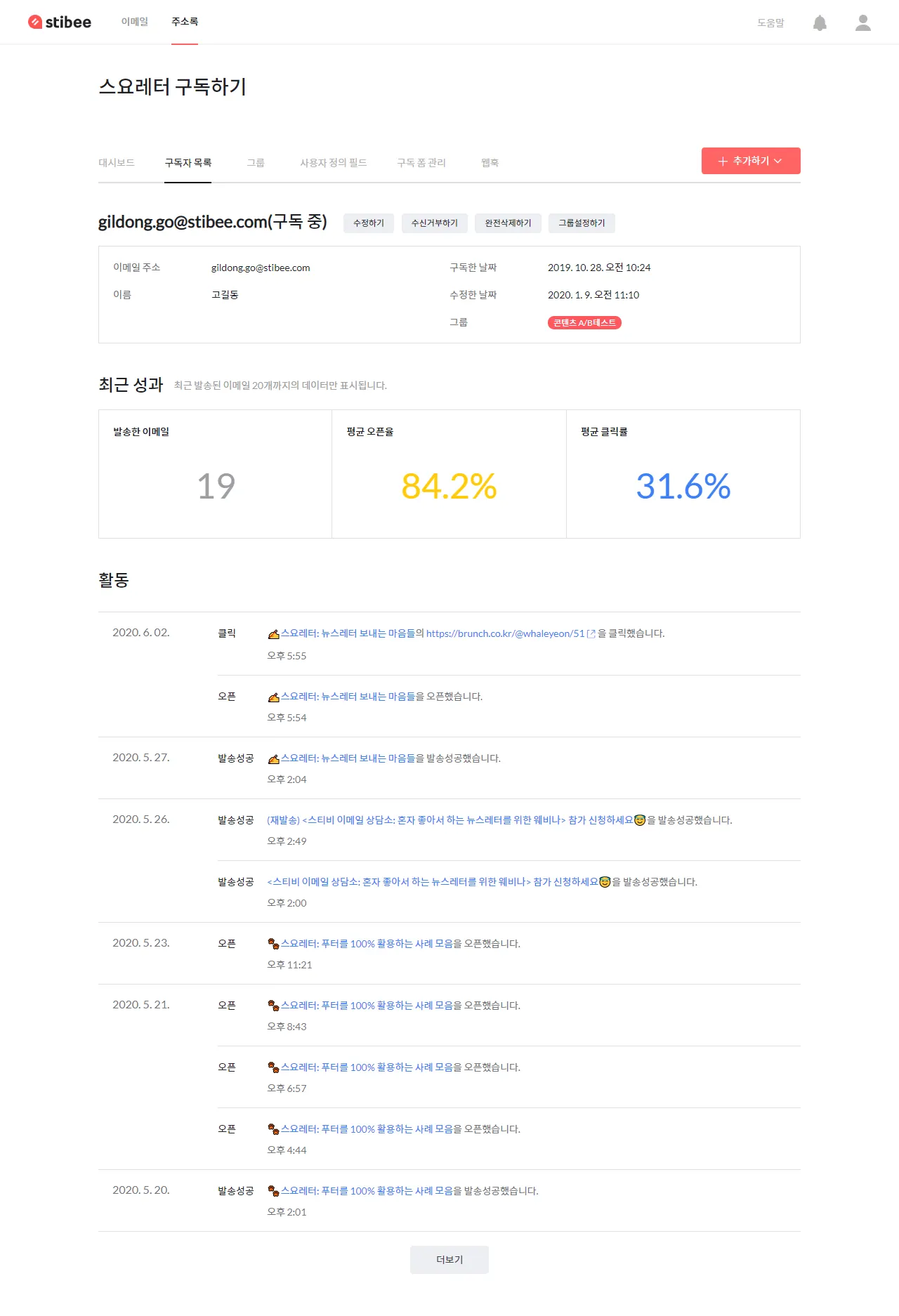뉴스레터나 마케팅 이메일을 제작하고 발송하고 결과를 분석할 수 있는 서비스입니다.
